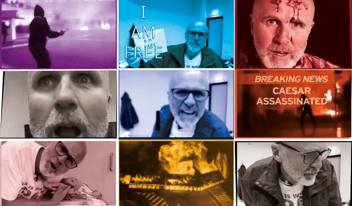 Due to be touring around the kingdom up to Edimburgh, `locked down` for the notorious reasons, this production preferred the aural dimension to the visual one to reach its audience. Hence, built up a net of efforts on the distance between actors — a couple of `hug-you-I-would`, Nicholas Collett, as Yorick, and Tim Marriott, as the King, and sound engineer/director Trevor Datson.